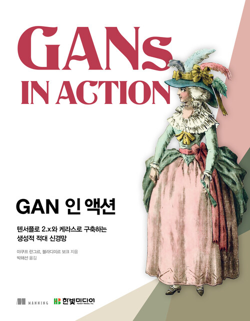 GAN 인 액션은 텐서플로와 케라스를 활용하여 여러가지 GAN 모델을 구축해볼 수 있는 책입니다. 많은 인공지능 도서를 번역하신 박해선님께서 옮겼습니다. 최근 디퓨전 모델이 부상하며 GAN에 대한 인기가 조금 사그라들었지만, 텐서플로에 익숙하다면 여러가지 모델을 실습해보며 GAN을 배워볼 수 있는 책이라 생각됩니다.