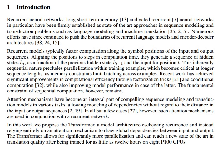 ▶ 우리는 어텐션 메커니즘에만 기반을 둔 새롭고 간단한 네트워크 아키텍처인 Transformer를 제안합니다. (RNN과 CNN은 완전히 배제)