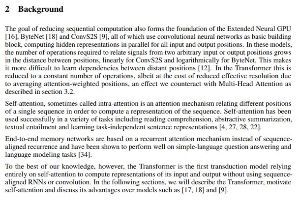 ▶ Sequential 연산을 줄이는 목표는 Extended Neural GPU*, ByteNet, ConvS2S는 모두 컨볼루션 신경망을 기반으로 기본 구성 요소로 사용해 모든 입력 및 출력 위치에 대한 숨겨진 표현을 병렬로 계산합니다.