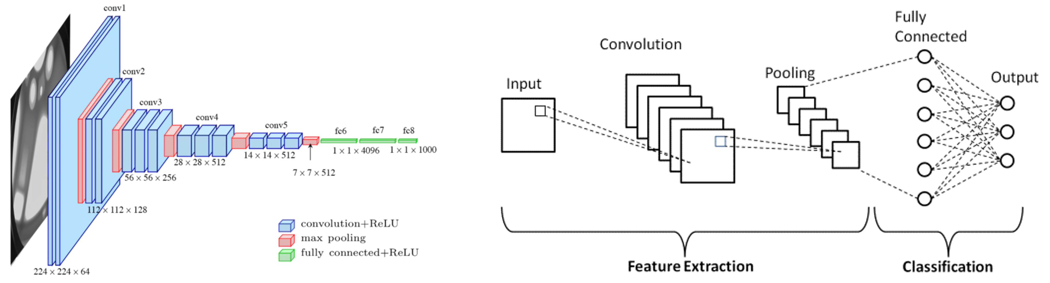 CNN(Convolutional Neural Network)은 이미지 처리에 탁월한 성능을 보이는 신경망입니다. 일반적으로 입력 이미지로부터 유용한 특성만 추출하여 입력 이미지가 어떠한 클래스인지 분류하게 됩니다. 합성곱 신경망은 크게 합성곱층(Convolution layer)과 풀링층(통합 계층, Pooling layer), 완전 연결층(fully connected layer)으로 구성되어 있습니다.